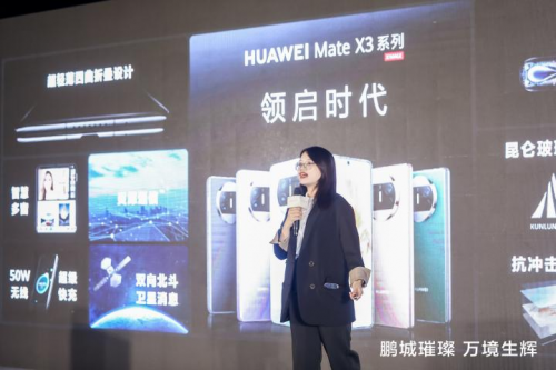 此外,HUAWEI Mate X3、HUAWEI WATCH Ultimate 、HUAWEI FreeBuds 5等新品也广受大家喜爱。HUAWEI Mate X3采用业界首款四曲折叠机身设计,展开后机身厚度只有 5.3mm。拍摄方面,后置摄像头采用“寰宇舷窗”设计采用5000 万像素主摄像头、1300 万像素超广角镜头、1200 万像素 5 倍潜望式长焦镜头摄像头组合。HUAWEI WATCH Ultimate作为全球首款支持双向北斗卫星消息的大众智能手表,支持一键发送北斗卫星消息,无地面网络信号也能求救。HUAWEI FreeBuds 5采用全新“水滴”造型,拥有绝佳的舒适佩戴与澎湃音质的好体验。