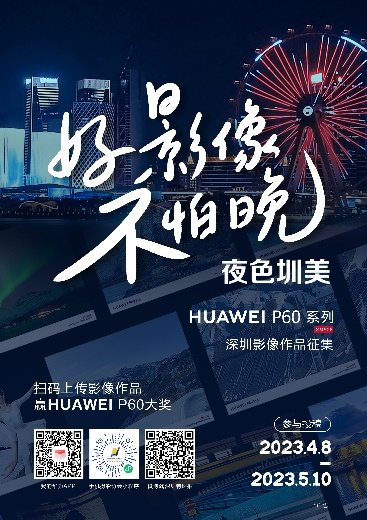 2023年4月8日至5月10日,通过我的华为APP、深圳特区报官方微博、深圳市手机摄影协会小程序三方任意平台,带上指定话题#好影像不怕晚# #夜色圳美#,上传作品即可参与评选。一等奖可获得HUAWEI P60大奖,二等奖可获得HUAWEI FreeBuds 5,三等奖可获得华为手环7。